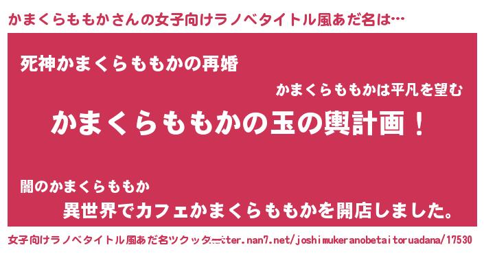 | 男性向けラノベタイトル風あだ名 | 『かまくらももか~年齢イコール彼女いない歴の魔法使い~』 |