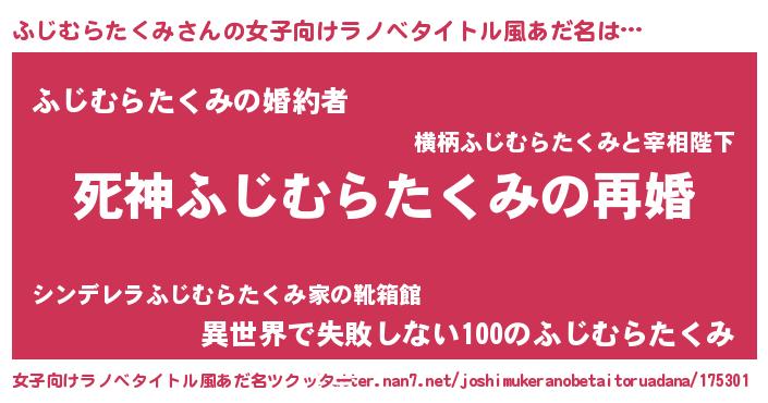 | 男性向けラノベタイトル風あだ名 | 『ノーゲーム・ノーフジムラタクミ』 |