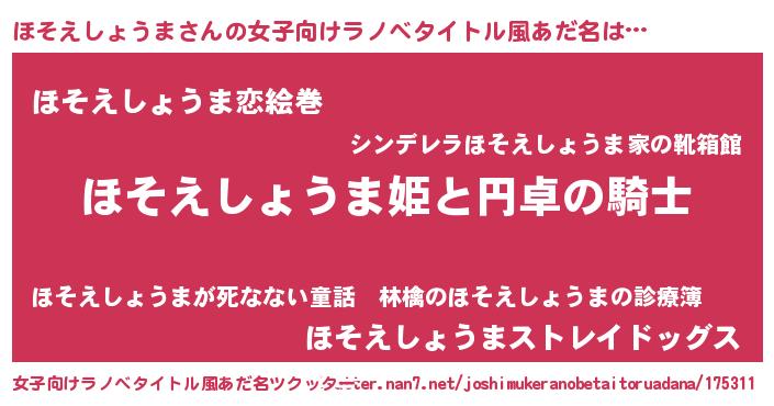| 男性向けラノベタイトル風あだ名 | 『ほそえしょうまの憂鬱』 |