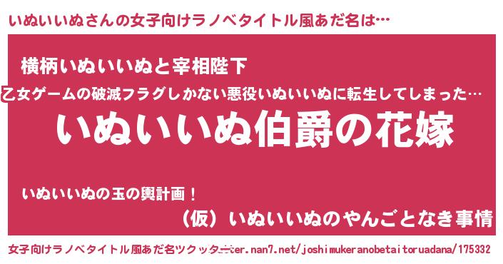 | 男性向けラノベタイトル風あだ名 | 『やはりいぬいいぬの青春ラブコメはまちがっている 』 |