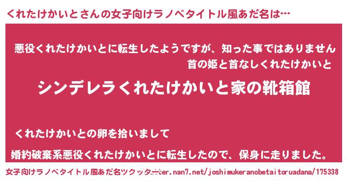| 意味不明あだ名 | 『住所不定無職くれたけかいと(14歳)』 |