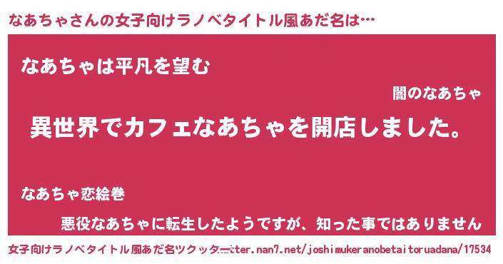 | 男性向けラノベタイトル風あだ名 | 『誰もが恐れるあのなあちゃが、ぼくの専属メイドになるようです。』 |