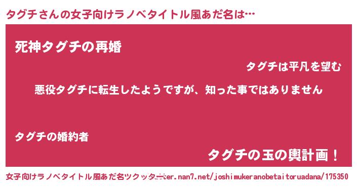 | 意味不明あだ名 | 『住所不定無職タグチ(12歳)』 |