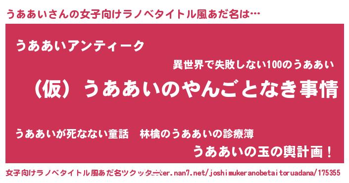 | 男性向けラノベタイトル風あだ名 | 『うああいの憂鬱』『魔弾の王とうああい』 |