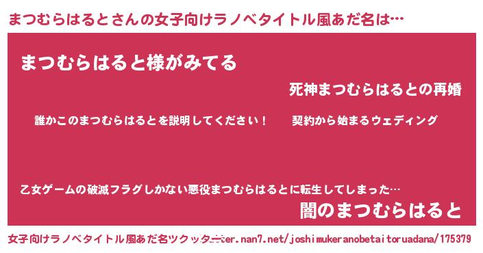 | 男性向けラノベタイトル風あだ名 | 『マツムラハルトアートオンライン』 |