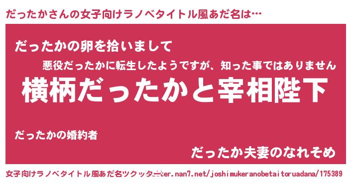 | 男性向けラノベタイトル風あだ名 | 『だったかに滅ぼされるだけの簡単なお仕事です』 |