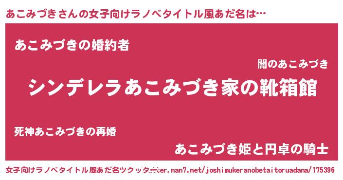 | 男性向けラノベタイトル風あだ名 | 『冴えないあこみづきの育てかた』 |