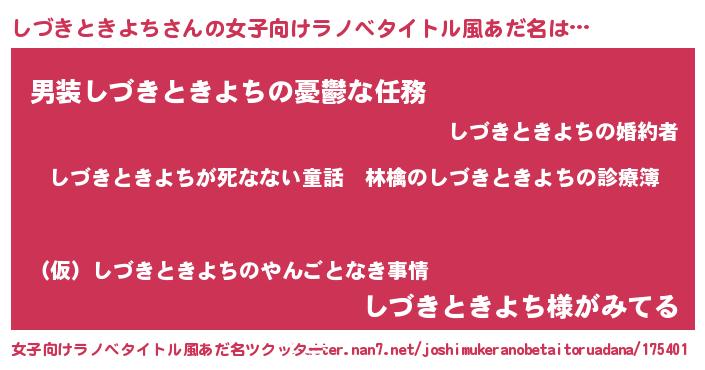| 男性向けラノベタイトル風あだ名 | 『魔弾の王としづきときよち』 |