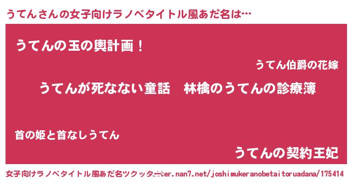 | 胡散臭い通販商品みたいなあだ名 | 『ハリウッド女優が絶賛した100年もののヴィンテージワイン…その名も「うてん」』 |