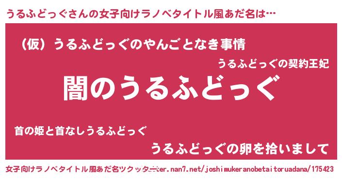 | 男性向けラノベタイトル風あだ名 | 『Re:うるふどっぐから始める異世界生活』 |