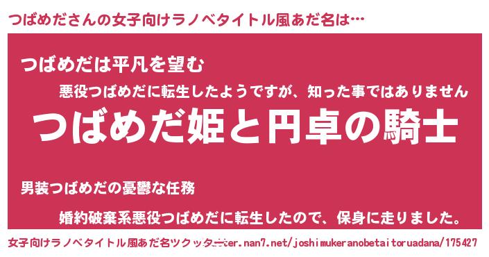 | 男性向けラノベタイトル風あだ名 | 『つばめだの憂鬱』『ツバメダスレイヤー』 |