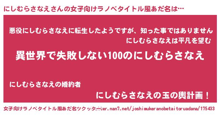 | 男性向けラノベタイトル風あだ名 | 『にしむらさなえという概念が存在しない退屈な世界 』 |