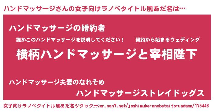 | ファンタジー風あだ名 | 『エターナルハンドマッサージー』 |