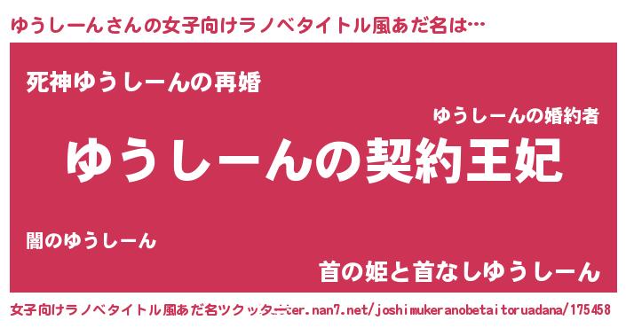 | 胡散臭い通販商品みたいなあだ名 | 『来世でも幸せになれる健康食品…その名も「ゆうしーん」』 |