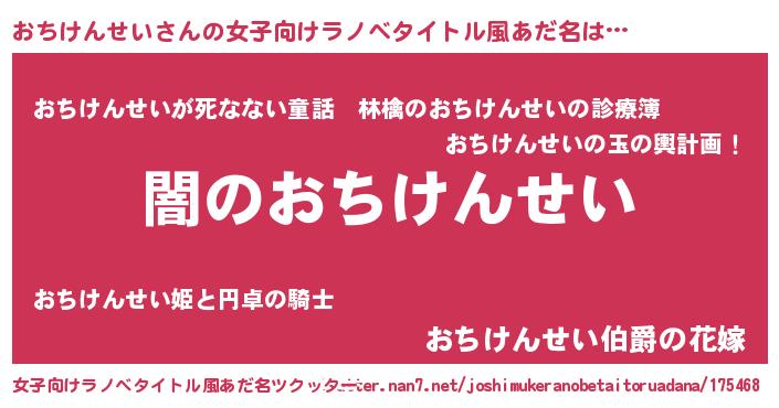 | 男性向けラノベタイトル風あだ名 | 『Re:おちけんせいから始める異世界生活』 |