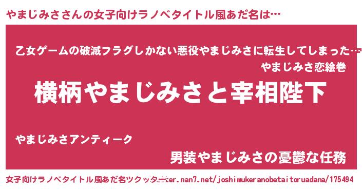 | 意味不明あだ名 | 『住所不定無職やまじみさ(12歳)』 |