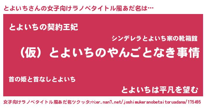 | 男性向けラノベタイトル風あだ名 | 『とよいちの憂鬱』『緋弾のトヨイチ』 |