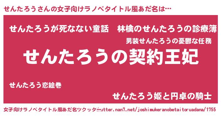 | 胡散臭い通販商品みたいなあだ名 | 『来世でも幸せになれる健康食品…その名も「せんたろう」』 |