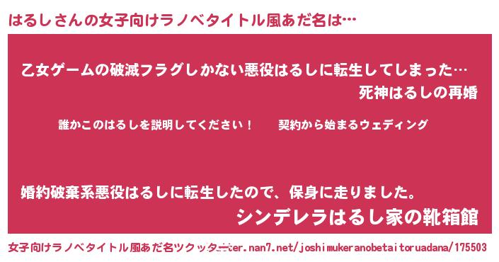 | 胡散臭い通販商品みたいなあだ名 | 『億万長者になれるブレスレット…その名も「はるし」』 |