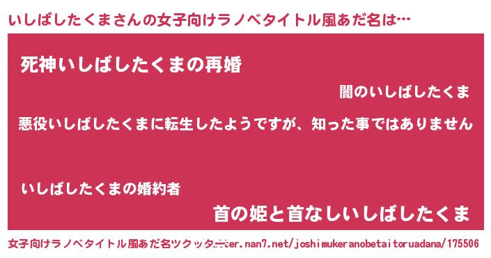 | 男性向けラノベタイトル風あだ名 | 『この素晴らしい世界にいしばしたくまを!』 |