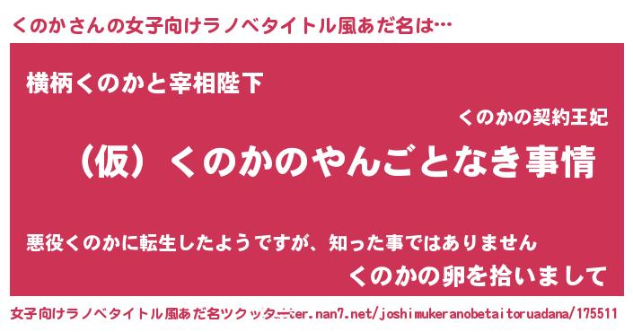 | 男性向けラノベタイトル風あだ名 | 『くのかの憂鬱』 |