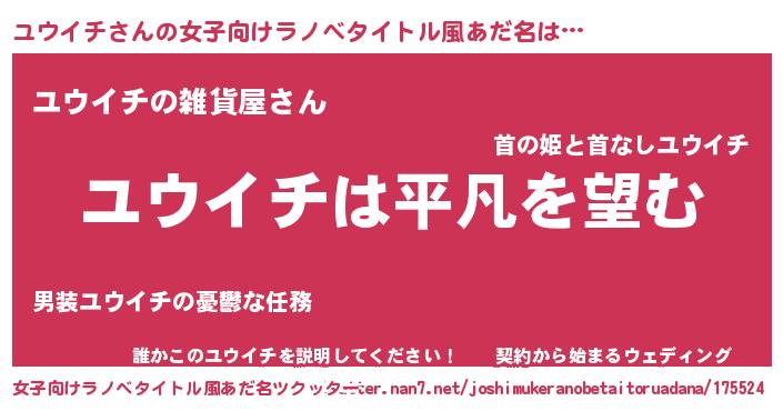 | ヒーロー風カッコイイあだ名 | 『暗黒騎士ユウ』『ウルトラユウイチマン』 |