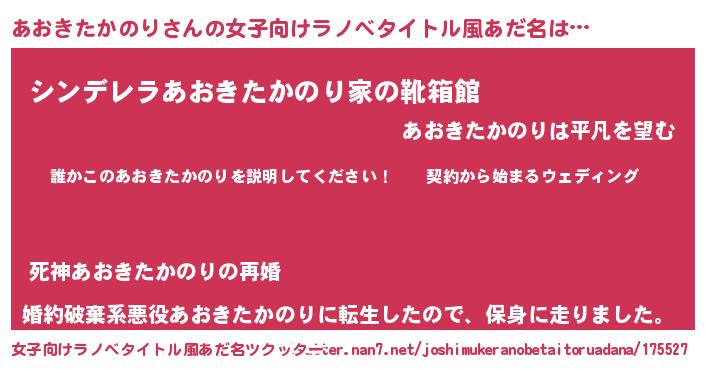 | 肩書あだ名 | 『あおきたかのり御曹司』 |