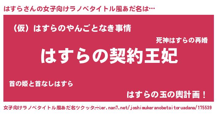 | 男性向けラノベタイトル風あだ名 | 『誰もが恐れるあのはすらが、ぼくの専属メイドになるようです。』 |