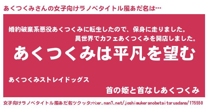 | ヘコむあだ名 | 『あくぷりん』『あくつくみ(爆)』 |