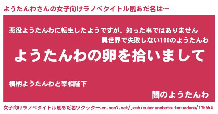 | 男性向けラノベタイトル風あだ名 | 『ダンジョンにようたんわを求めるのは間違っているだろうか』 |