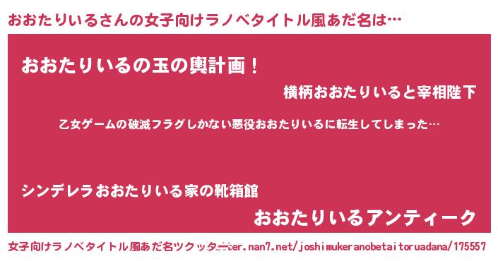 | ヒーロー風カッコイイあだ名 | 『仮面オオダー』『究極戦士オオタリイル』 |