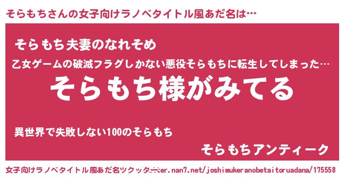| 胡散臭い通販商品みたいなあだ名 | 『全米が絶賛したサプリメント…その名も「そらもち」』 |