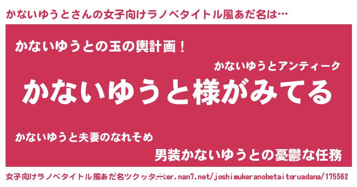 | 男性向けラノベタイトル風あだ名 | 『かないゆうとの嫁は女の子じゃないと思った?』 |