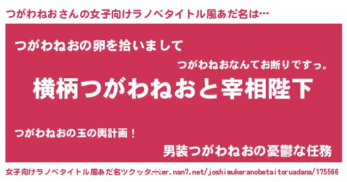 | 意味不明あだ名 | 『とにかく怪しいつがわねお』 |