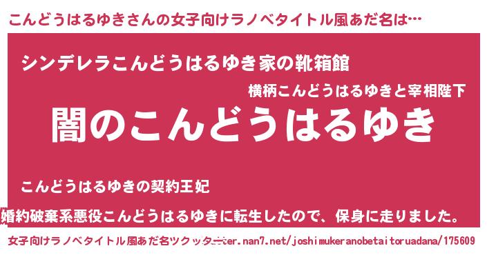 | 男性向けラノベタイトル風あだ名 | 『Re:こんどうはるゆきから始める異世界生活』 |