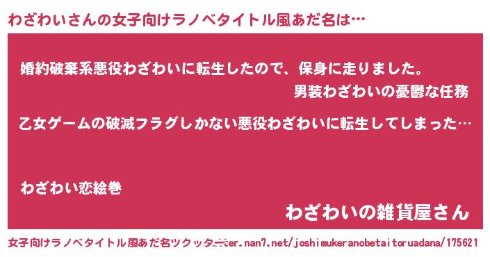 | 意味不明あだ名 | 『住所不定無職わざわい(79歳)』 |