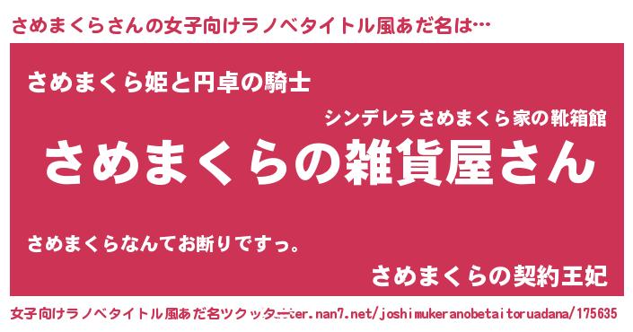| 男性向けラノベタイトル風あだ名 | 『やはりさめまくらの青春ラブコメはまちがっている 』 |