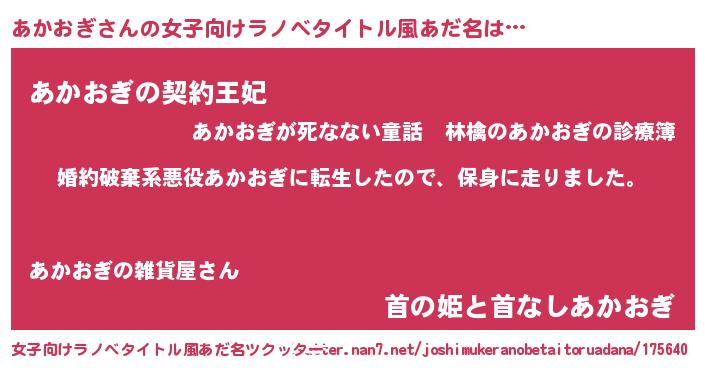| 男性向けラノベタイトル風あだ名 | 『アカオギスレイヤー』 |