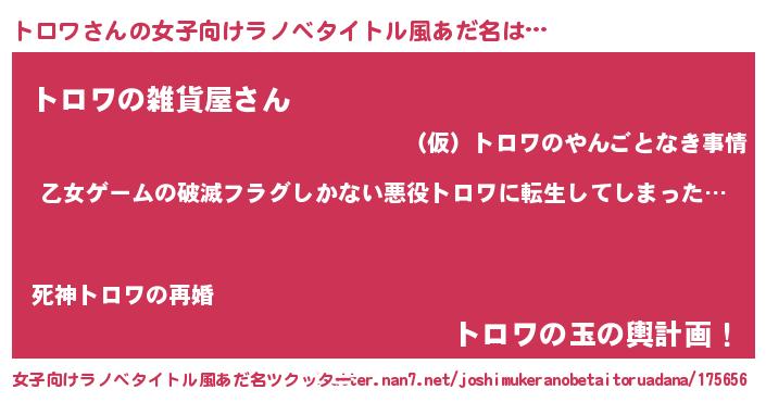 | 男性向けラノベタイトル風あだ名 | 『この素晴らしい世界にトロワを!』 |