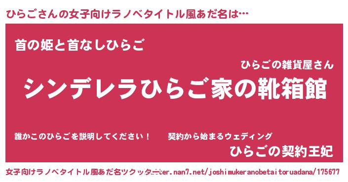 | 男性向けラノベタイトル風あだ名 | 『緋弾のヒラゴ』『はたらくひらごさま!』 |