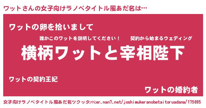| 肩書あだ名 | 『ワットプロデューサー』『ワット塾長』 |