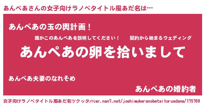 | 意味不明あだ名 | 『とにかく怪しいあんぺあ』 |