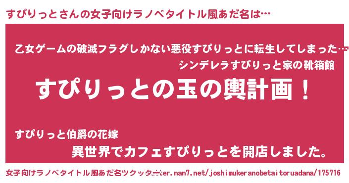 | 男性向けラノベタイトル風あだ名 | 『転生したらすぴりっとだった件』 |
