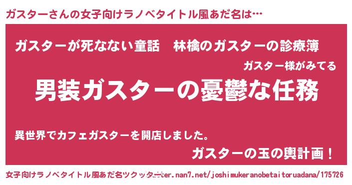 | 男性向けラノベタイトル風あだ名 | 『冴えないガスターの育てかた』 |
