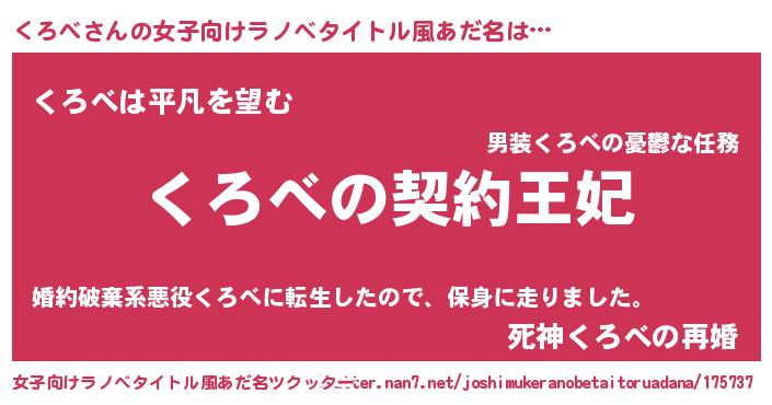 | 胡散臭い通販商品みたいなあだ名 | 『来世でも幸せになれる健康食品…その名も「くろべ」』 |