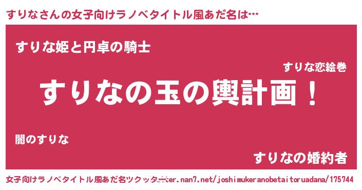 | 男性向けラノベタイトル風あだ名 | 『転生したらすりなだった件』 |