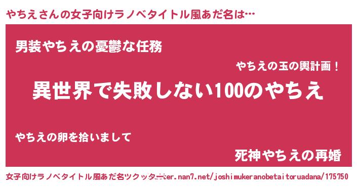 | ヒーロー風カッコイイあだ名 | 『ネオヤチエ』『天空の使者やちえ』 |