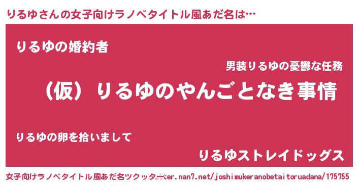 | 男性向けラノベタイトル風あだ名 | 『りるゆの憂鬱』 |
