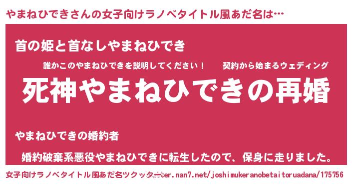 | 男性向けラノベタイトル風あだ名 | 『ノーゲーム・ノーヤマネヒデキ』 |