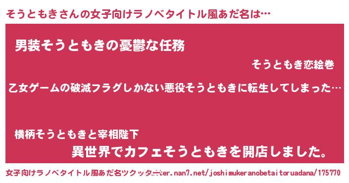 | ヘコむあだ名 | 『そうともき(震え声)』『そう太郎』 |
